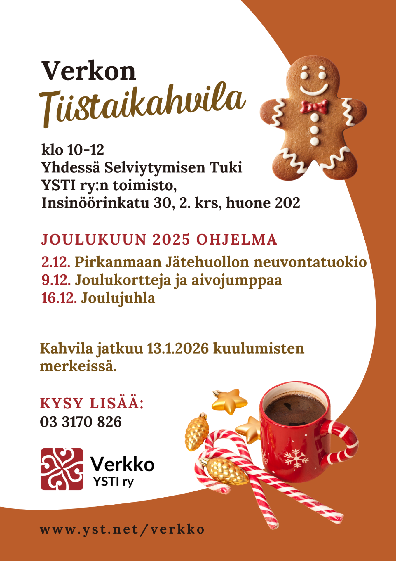 Tervetuloa joulumyyjäisiin YSTI:n toimistolle ke 3.12. klo 10-14.30. Myynnissä leivonnaisia, havukimppuja, kauniita kukkakeppejä ja paljon erilaisia neuleita. Lämpimästi tervetuloa!