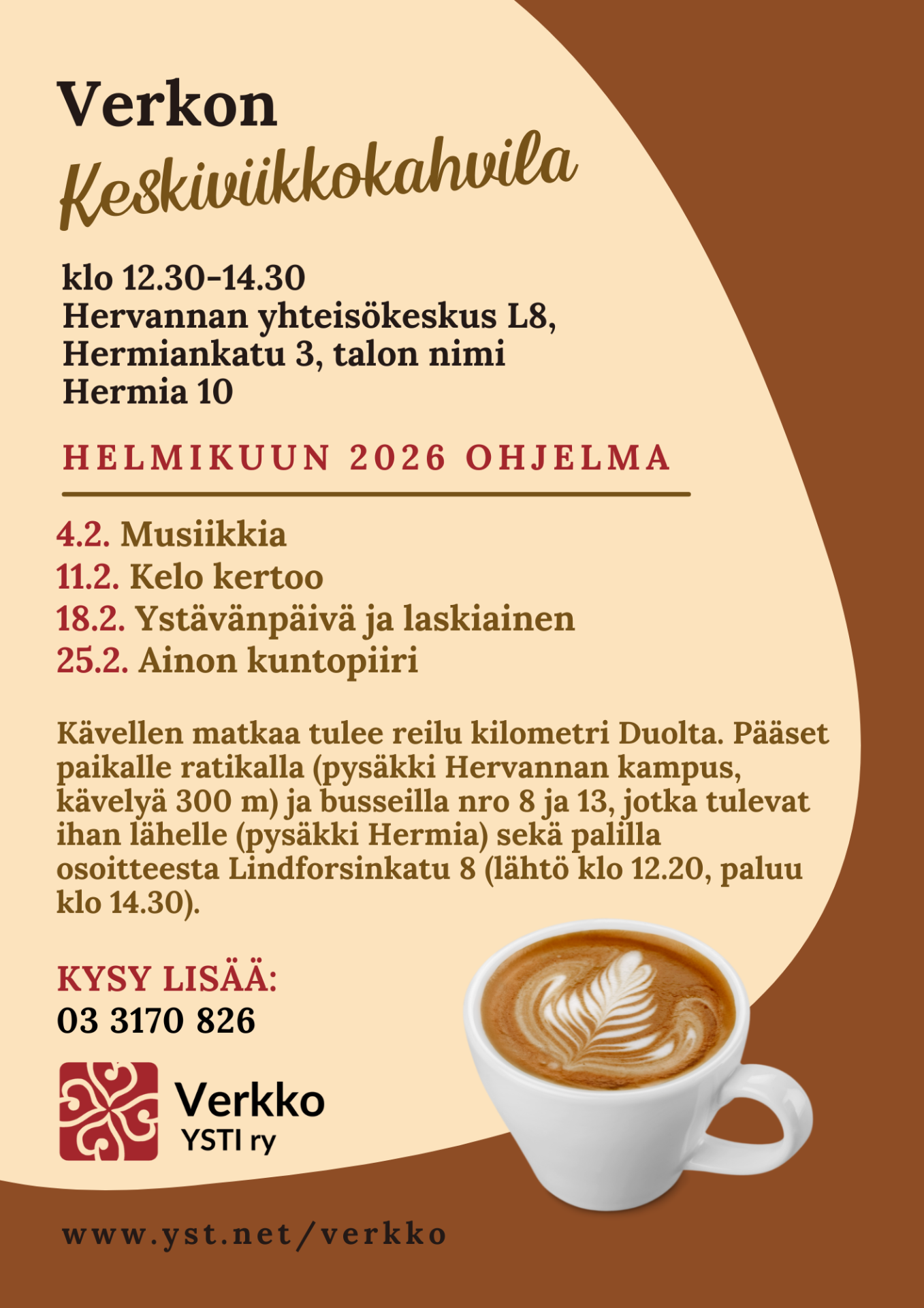 Verkon tiistai- ja keskiviikkokahviloiden ohjelmat
